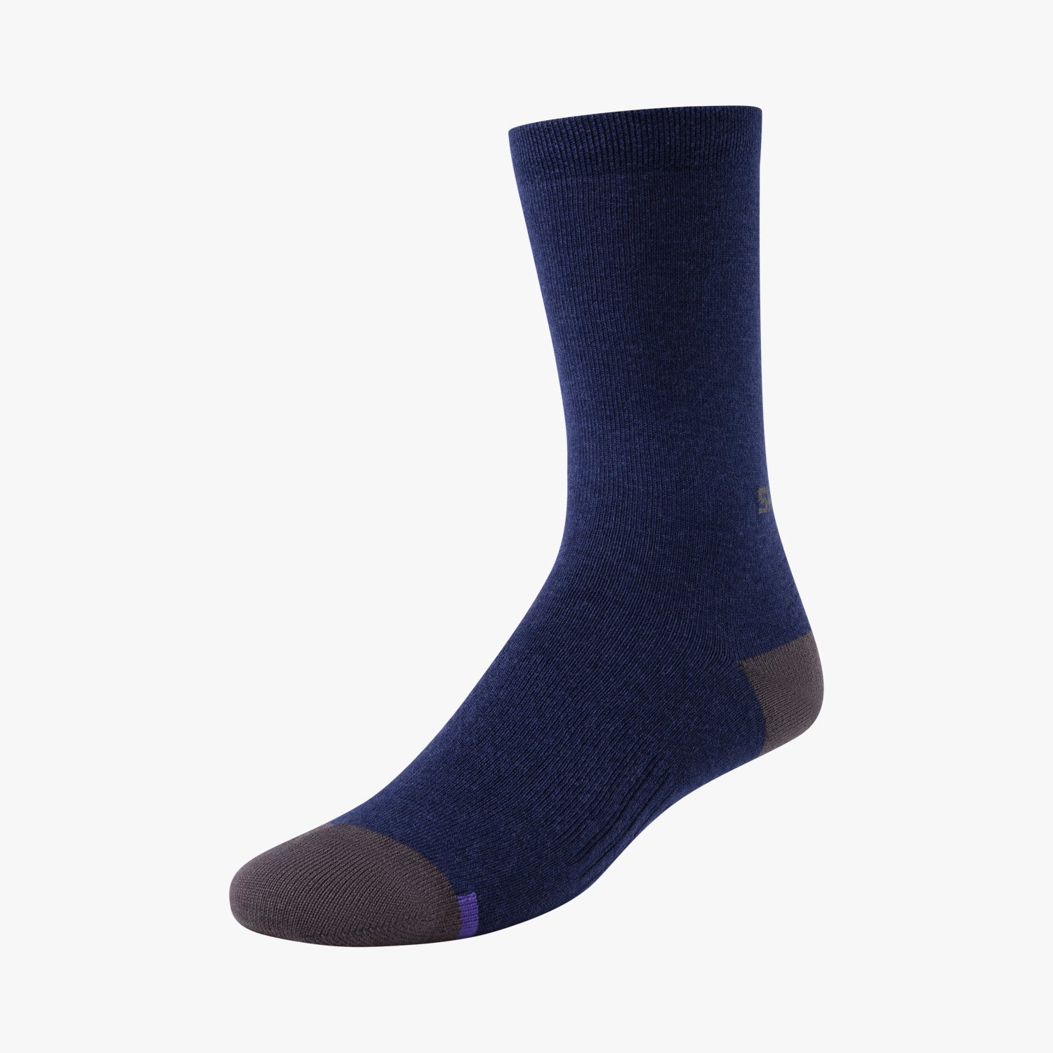 Versatile mid-calf cycling socks made from a natural wool blend that better absorbs moisture to keep feet dry and comfortable even on your longest days in the saddle. Enhanced arch support secures feet in place, while the Shimano logo above the heel adds a touch of flare.