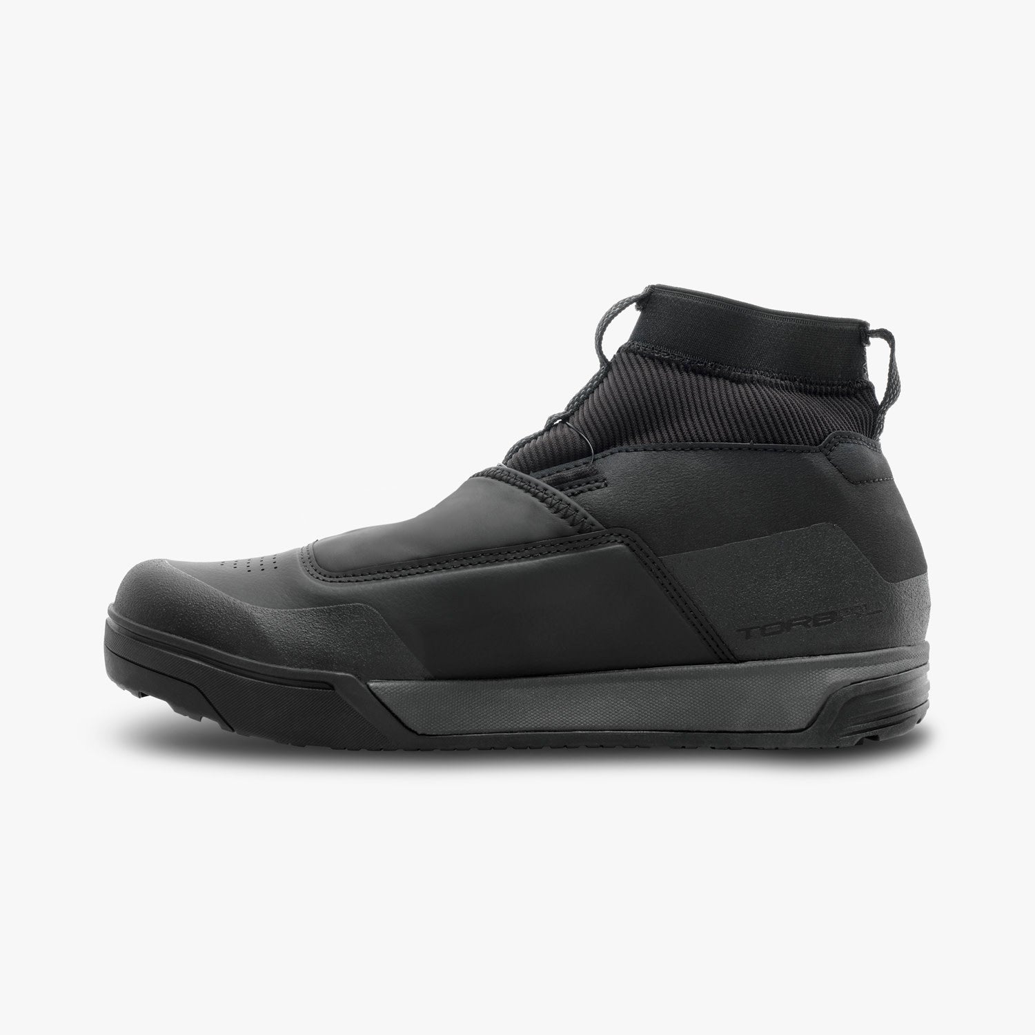 Specially-formulated ULTREAD GF outsole utilizes a sticky, slow rebound, low temperature rubber compound that delivers optimal deformation performance in cool and cold weather conditions, enhancing pin engagement and shoe-to-pedal connection. Wide sole profile with hexagonal tread block pattern increases multi-direction stability for increased confidence and control in technical, rugged terrain.