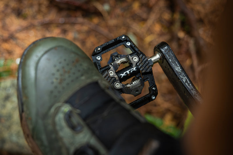 The highly durable PD-M9220 is a fully re-designed XTR-level trail pedal for aggressive enduro and all-mountain riding and racing. On climbs you’ll appreciate the enhanced efficiency thanks to its wider contact area. During descents you’ll relish the extra control, security and stability due to its raised platform and grip-enhancing traction pins that improve the pedal-to-shoe interface.